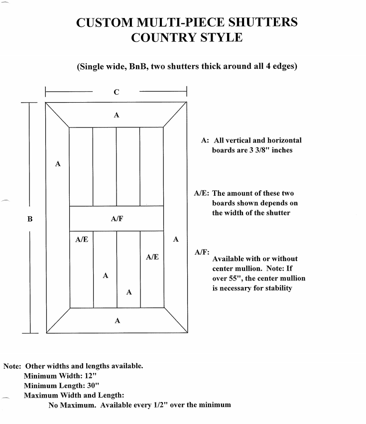 PLEASE NOTE: All country-style vinyl shutters are custom-made to order, and are non-refundable.